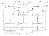 図2は、ゲーム端末3の概略構成を示すブロック図である。図2に示すように、ゲーム端末3のゲームコンピュータ31は、メインプロセッサ311、サウンドプロセッサ312、I/Oプロセッサ313、グラフィックスプロセッサ315、及び、メモリ316を含む。サウンドプロセッサ312及びメモリ316は、内部バスを介してI/Oプロセッサ313と接続されている。メインプロセッサ311とI/Oプロセッサ313とは互いに接続されている。メインプロセッサ311とグラフィックスプロセッサ315とは互いに接続されている。I/Oプロセッサ313は、図示されないシリアルインターフェースを介してゲームコントローラ38などの入出力デバイスと接続される。I/Oプロセッサ313は、図示されない通信インターフェースを介して仲介サーバ2などの外部装置と通信する。  FIG. 2 is a block diagram showing a schematic configuration of the