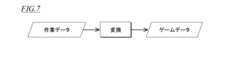 変換部42bは、作業データを所定の変換規則で変換することによりゲームデータを生成する。変換規則は、記憶装置24に予め記憶されている。ゲームデータには、ゲーム端末3で実行されるゲームプログラムが含まれ得る。また、ゲームプログラムが予めゲーム端末3にインストールされている場合には、ゲームデータには、ゲームプログラムに適用されるゲームパラメータが含まれ得る。ゲームデータ供給部42cは、生成したゲームデータをゲーム端末3へ供給する。  The