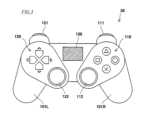図3は、ゲームコントローラ38の一例の外観図である。図3に示すゲームコントローラ38は、略U字形の外形を呈する。ゲームユーザは、両翼部のハンドル101L,101Rを左右両手で把持して操作する。ゲームコントローラ38の左右上面には操作ボタン群110,120、アナログスティック112,122が設けられており、ゲームコントローラ38の右前面にはRボタン111、左前面にはLボタン121がそれぞれ設けられている。操作ボタン群110及びアナログスティック112はゲームユーザの右手親指で操作され、操作ボタン群120及びアナログスティック122はゲームユーザの左手親指で操作される。また、Rボタン111、Lボタン121は、それぞれゲームユーザの右手人指し指、左手人指し指で操作される。ゲームコントローラ38は、操作ボタン群110と操作ボタン群120との間にタッチディスプレイ130を更に備える。  FIG. 3 is an external view of an example of the