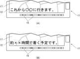 文字言語が1行に収まらない場合、先頭から1行に収まる文字言語「これから○○に行きます。」を初めに表示(図6(A))した後、この初めの表示を消して次の文字言語の行「約××時間で着く予定です。」を表示(図6(B))する。尚、1行の文字言語を読むために必要な必要既読時間が経過したら、初めの文字言語の行「これから○○に行きます。」を消して次の文字言語の行「約××時間で着く予定です。」を表示する。そして、必要既読時間は1~3秒程度とすることができる。 If the character language does not fit on one line, the character language that fits on one line from the beginning is displayed first (Fig. 6 (A)). The text line "I will arrive in about XX hours" is displayed (Fig. 6(B)). In addition, when the required reading time required to read one line of text language has passed, the first text language line "I'm going to XX from now on." I will be arriving at." is displayed. Then, the required reading time can be set to about 1 to 3 seconds.