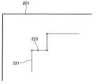 次に加工情報処理部103は、第一対象外形情報で形成される第一対象外形線221から生成された第一重複領域230を除外して第一対象外形情報を更新する。図6に示すような第一重複領域230が生成された場合、加工情報処理部103は、図9に示す形状に第一対象外形情報を更新する。  Next, the processing