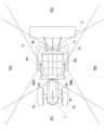 図示は省略するが、ブレーキユニット18には、左右の後輪11を個別に制動する左右のブレーキ、運転部12に備えられた左右のブレーキペダルの踏み込み操作に連動して左右のブレーキを作動させるフットブレーキ系、運転部12に備えられたパーキングレバーの操作に連動して左右のブレーキを作動させるパーキングブレーキ系、及び、左右の前輪10の設定角度以上の操舵に連動して旋回内側のブレーキを作動させる旋回ブレーキ系、などが含まれている。 Although not shown, the