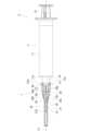 小径部26は、大略円筒状に形成されており、その外周面には、4つのリブ26aが一体的に形成されている。4つのリブ26aは、半径方向に突出し且つ針軸方向に延在している板状の部分であり、周方向に等間隔(即ち、約90度の間隔)をあけて配置されている。また、小径部26は、大径部25内と繋がる内孔23bを有しており、内孔23bに針21が嵌合されて固定されている。  Thesmall diameter portion 26 is formed into a generally cylindrical shape, and fourribs 26a are integrally formed on the outer circumferential surface of thesmall diameter portion 26. The fourribs 26a are plate-shaped portions that protrude in the radial direction and extend in the needle axis direction, and are arranged at equal intervals in the circumferential direction (that is, at intervals of about 90 degrees). Further, thesmall diameter portion 26 has an inner hole 23b connected to the inside of thelarge diameter portion 25, and theneedle 21 is fitted and fixed in the inner hole 23b.
