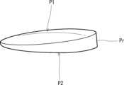 図9は、一般的なプリズムレンズPrの例を示す図である。プリズムレンズは、厚みが傾斜するように形成されている。したがって、プリズムレンズは、互いに平行でない対向する1組の面P1,P2を有する。つまり、面P1及び面P2は、これらの一端から他端に向かって互いの間隔が短く又は長くなる、対向する1組の面である。例えば、図9において、左端から右端に向かって、面P1と面P2との間隔は長くなる。逆に、図9において、右端から左端に向かって、面P1と面P2との間隔は短くなる。光がプリズムレンズPrを通過することにより、光の進行方向が屈折する。本実施の形態では、プリズムレンズのこの性質が利用されている。 FIG. 9 is a diagram showing an example of a general prism lens Pr. The prism lens is formed to have a sloped thickness. Therefore, the prism lens has a pair of opposing surfaces P1, P2 that are not parallel to each other. In other words, the surfaces P1 and P2 are a pair of opposing surfaces in which the distance between them becomes shorter or longer from one end to the other end. For example, in FIG. 9, the distance between the planes P1 and P2 increases from the left end to the right end. Conversely, in FIG. 9, the distance between the planes P1 and P2 becomes shorter from the right end to the left end. When the light passes through the prism lens Pr, the traveling direction of the light is refracted. In this embodiment, this property of the prism lens is utilized.
