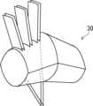 プリズムレンズ30は、プリズムレンズ20Aとプリズムレンズ20Bとで形成されている。プリズムレンズ20A及びプリズムレンズ20Bは、実施の形態1にかかるプリズムレンズ20と実質的に同様の形状を有している。したがって、プリズムレンズ20Aは、プリズムレンズ本体22Aと、シリンドリカルレンズ24Aと、シリンドリカルレンズ26Aとを有する。プリズムレンズ20Bは、プリズムレンズ本体22Bと、シリンドリカルレンズ24Bと、シリンドリカルレンズ26Bとを有する。プリズムレンズ本体22A,22Bは、プリズムレンズ本体22に対応する。シリンドリカルレンズ24A,24Bは、シリンドリカルレンズ24に対応する。シリンドリカルレンズ26A,26Bは、シリンドリカルレンズ26に対応する。  The