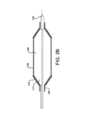 別のこうした変形は、概して膨張性が低い又は全く膨張できない材料(例えば、フッ素化エチレンプロピレン(FEP)、PATT、熱可塑性材料、ナイロンなど)を、バルーンの肩の標的領域にコーティングするか又は吸収させることを含む。例えば、ePTFEバルーン材料を含む説明に役立つ実施態様において、吸収させることは、標的領域において、多孔性ePTFEの細孔を、概して膨張性が低いポリマー材料で少なくとも部分的に満たすことを伴う。 Another such variation involves coating or absorbing materials that generally have low or no expansion (e.g., fluorinated ethylene propylene (FEP), PATT, thermoplastics, nylon, etc.) on the target area of the balloon shoulder. Including causing. For example, in illustrative embodiments involving ePTFE balloon materials, imbibing involves at least partially filling the pores of the porous ePTFE in the target area with a generally less expansive polymeric material.