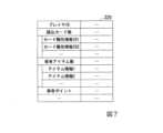 図7は、実施形態のプレイヤ情報記憶部320の構成の例を示す図である。プレイヤ情報は、プレイヤ毎に作成される。プレイヤ情報は、例えば、プレイヤID、読込カード数、読込カード数に応じた数のカード属性情報ID、保有アイテム数、保有アイテム数に応じた数のアイテム情報、保有ポイントなどの項目を備える。プレイヤIDは、プレイヤを一意に識別する情報である。保有カード数は、プレイヤIDに対応するプレイヤが読み込んだカードの数である。ここで読み込んだカードとは、カードに付されたバーコードが撮像され(読み込まれ)、撮像された画像を用いた真贋判定の結果、プレイヤのカードが正規品であると判定されたカードのことである。カード属性情報IDは、カード属性情報を一意に示す情報である。カード属性情報は、カード属性情報記憶部321に記憶される情報である。保有アイテム数は、プレイヤIDに対応するプレイヤが保有するアイテムの数である。アイテム情報は、アイテムの内容を示す。保有ポイントは、プレイヤIDに対応するプレイヤが保有するポイントを示す。  FIG. 7 is a diagram showing an example of the configuration of the player