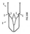 図示の実施形態において、ローディングプラー652は、埋植可能な医療装置650に解放可能に装着され、且つストレージ部材512及び第2キャップ516のそれぞれ内に部分的に配設されている。ローディングプラー652は、長手方向軸657と、第1端部658と、第2端部660と、長さ661と、第1屈曲部664、第2屈曲部666、第3屈曲部668及び第4屈曲部670を画定する本体662とを有する。ローディングプラー657は、本明細書において詳述しているように、供給システムの細長い部材によって画定された切欠きと結合するようにサイズ設定及び構成されている。ローディングプラー652が埋植可能な医療装置650に解放可能に装着された際、ローディングプラーが、埋植可能な医療装置650のフレーム654の一部分を部分的に取り囲む2つのフック付き端部672、674を画定するように、第1屈曲部664は、第1端部658と第2屈曲部666との間の第1端部658の近傍に位置決めされ、且つ第4屈曲部670は、第2端部660と第3屈曲部668との間の第2端部660の近傍に位置決めされている。第1フック付き端部672は、ローディングプラー652の長手方向軸657に対して第2フック付き端部674とは反対側に位置決めされている。ローディングプラー652がU字形状の部材676を画定するように、第2屈曲部666は、第1屈曲部664と第3屈曲部668との間に配設され、且つ第3屈曲部668は、第2屈曲部666と第4屈曲部670との間に配設されている。ローディングプラー652は、第1の圧縮されていない又は開放された構成と、第2の圧縮された又は閉鎖された構成との間で移動可能である。閉鎖構成において、ローディングプラー652は、ローディングプラー652が埋植可能な医療装置に解放可能に装着され得るように、埋植可能な医療装置の外径より小さい、フック付き端部672、674間に配設された幅を有する。閉鎖構成において、図16Bに示されているように、ローディングプラー652の一部分(例えば、フック付き端部672、674)は、軸方向の力がローディングプラー652に印加された際、ローディングプラー652が、埋植可能な医療装置650に軸方向の力を印加する能力を有するように、埋植可能な医療装置650のフレームによって画定された1つ又は複数の開口部651内に配設されている。開放構成において、ローディングプラー652は、ローディングプラーが埋植可能な医療装置から自由になるように、埋植可能な医療装置の外径より大きい、フック付き端部672、674間に配設された幅を有する。図示の実施形態において、ローディングプラー652は、開放構成に付勢されている。  In the illustrated embodiment, a