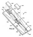 図示の実施形態において、先端1516’の本体1550’は、第1凹部1570’及び第2凹部1572’を画定する。第1凹部1570’及び第2凹部1572’のそれぞれは、第1端部1546’から第2端部1548’に向かって延在し、且つ先端1516’及び装着された細長い部材が、本明細書において記述されているものなどの別のコンポーネント(例えば、ローディング部材、ストレージ部材、装置ガード、装置ガードの平坦な表面)に対して方向付けされ得るように、装置ガード又はキャップの一部分を受け入れるようにサイズ設定及び構成されている。図示の実施形態において、第1凹部1570’及び第2凹部1572’のそれぞれは、先端1516’の長手方向軸を通して延在する平面上に配設されている。但し、代替実施形態は、先端の長手方向軸を通して延在する第1平面上に配設された第1凹部と、第1平面に対して任意の適切な角度(例えば、45度)において先端の長手方向軸を通して延在する第2平面上に配設された第2凹部とを含むことができる。 In the illustrated embodiment, the body 1550' of the tip 1516' defines a first recess 1570' and a second recess 1572'. Each of the first recess 1570' and the second recess 1572' extends from the first end 1546' toward the second end 1548', and the tip 1516' and the attached elongated member are to receive a portion of the device guard or cap so that it can be oriented against another component (e.g., a loading member, a storage member, a device guard, a flat surface of the device guard) such as those described in Sized and configured. In the illustrated embodiment, each of the first recess 1570' and the second recess 1572' are disposed on a plane extending through the longitudinal axis of the tip 1516'. However, alternative embodiments include a first recess disposed on a first plane extending through the longitudinal axis of the tip, and a first recess disposed on a first plane extending through the longitudinal axis of the tip, and a first recess disposed on a first plane extending through the longitudinal axis of the tip; a second recess disposed on a second plane extending through the longitudinal axis.