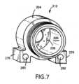 図19及び図25に示されているように、ディフューザ914は、第1キャップ814に永久的に装着され、第1一方弁910は、第1キャップ814に永久的に装着され、且つ第1キャップ814は、それぞれ、ストレージ部材812によって画定されたポスト1074、1076の一部分を受け入れるようにサイズ設定及び構成された第1及び第2開口部1080、1082を画定する。それぞれの開口部1080、1082は、第1外径1075を有するポスト1074、1076の一部分を受け入れるようにサイズ設定及び構成された第1部分1084と、第2外径1077を有するポスト1074、1076の一部分を受け入れるようにサイズ設定及び構成された第2部分1086とを有する。使用時、第1キャップ814は、第1ポスト1074が第1開口部1080内に配設され、且つ第2ポスト1076が第2開口部1082内に配設されるように、ストレージ部材812上に位置決めされている。ポスト1074、1076が開口部1080、1082内に位置決めされた後、第1キャップ814は、ストレージ部材812と第1キャップ814との間で解放可能な装着を実現するために、ストレージ部材812の長手方向軸813を中心としてストレージ部材812に対して回転している。  As shown in FIGS. 19 and 25, a