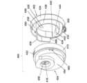 図8を参照し、本体404とカバー402とが係合されている場合、本体404の側壁410は気体通路438内に受け入れられ、且つ、本体404はカバー402により閉鎖される。第1端部411の位置は破線として示され、突起446とシールを形成し、且つ、側壁410とガイド部材436との間に平面螺旋状の気体通路438を規定するために、ガイド部材436の第4端部440に隣接し、ここで、第5端部442と側壁410との間に間隔があけられて隙間443を形成し、且つ、該実施例において、騒音低減装置の気体入口456は、騒音低減装置の気体出口406に垂直になるように構成される。フィルタ(図5の415を参照)が本体404に配置されている実施例において、本体404とカバー402とが係合されている場合、ガイド部材436は、フィルタ415をガイド部材436と本体404との間に挟み込むことでフィルタ415を適当な位置に保持するように、フィルタ415に接触する。これは、気体がフィルタ415を通過する際、本体404とカバー402との間のフィルタ415の振動の回避にも寄与する。  Referring to FIG. 8, when