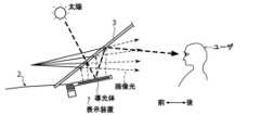 上記特許文献1の表示装置では、太陽光などの外光が導光部材の表面で反射してユーザの目に入り、ユーザが眩しく感じることがある。そこで、導光部材の表面で反射した外光がユーザの目に入りにくいように、例えば導光部材を湾曲形状とすることが考えられる。しかしながら、導光部材を湾曲形状にするとホログラフィック回折光学素子も同様に湾曲形状にする必要があり、ホログラフィック回折光学素子を簡易に作製することが困難になる。  In the display device of