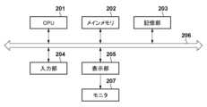 コンピュータ機器である情報処理装置は、図示しないネットワークインタフェイスを備えていてもよい。その場合、有線または無線ネットワークを介してサーバ装置にアクセスし、サーバ装置から各種プログラムや特性データを取得したり、演算処理結果をサーバ装置に出力することができる。また、情報処理装置は、後述する画像処理を実現するプログラムを実行するタブレットやスマートフォンでもよく、その場合、モニタ207と入力部204は一体化されたタッチパネルとして提供される。  The information processing device, which is a computer device, may include a network interface (not shown). In that case, the server device can be accessed via a wired or wireless network, various programs and characteristic data can be acquired from the server device, and arithmetic processing results can be output to the server device. Further, the information processing device may be a tablet or a smartphone that executes a program for implementing image processing, which will be described later. In that case, the
