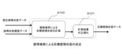 この発明の他の側面によれば、複数の対象から提示すべき対象を選択してユーザに対して提案する提案装置に:ユーザの状況を表すユーザ状況データを受け取り当該ユーザ状況データに基づいてユーザ感情状態を決定する感情状態決定手段と;ユーザ乗員感情状態から目標感情状態への推移の状態推移確率を保持する状態推移確率保持手段と;上記感情状態決定手段により決定されたユーザ感情状態および上記状態推移確率保持手段に保持されている状態推移確率に基づいて目標感情状態を決定する目標感情状態決定手段と;上記複数の対象の各々についてメタ情報を保持する対象メタ情報保持手段と;上記目標感情状態決定手段により決定された上記目標感情状態に基づいて上記対象メタ情報保持手段を参照して、提示すべき対象を決定する提示対象決定手段とを設けている。 According to another aspect of the present invention, a proposal device selects an object to be presented from a plurality of objects and proposes it to a user: receives user situation data representing the user situation; an emotional state determining means for determining an emotional state; a state transition probability holding means for retaining a state transition probability of a transition from a user passenger emotional state to a target emotional state; target emotional state determining means for determining a target emotional state based on state transition probabilities held in the state transition probability holding means; target meta information holding means for holding meta information about each of the plurality of objects; and the target. and presentation target determining means for determining a target to be presented by referring to the target meta information holding means based on the target emotional state determined by the emotional state determining means.
