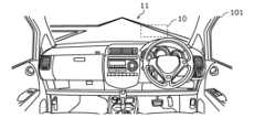 ここで、図1に示すように表示領域10は、車両101のコクピットの略正面となるように設計されている。これにより、表示装置は、車両101のドライバに対して車両101に関するあらゆる情報を示す画像を虚像として視認させることができる。なお、表示領域10の位置及び大きさはこれに限らず、助手席の略正面であってもよく、ウインドシールドの全面であってもよく、サイドウインドウ等のウインドシールドとは異なる箇所であってもよい。このとき、表示装置は、表示領域10の位置及び大きさに合わせた光学系を有する構成及び設置位置であればよい。  Here, as shown in FIG. 1, the
