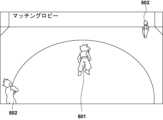 なお、対戦申込を行ったにも関わらずマッチングが成立しない状況を回避するため、既に候補プレイヤが対戦中となった待機キャラクターについては、仮想空間における表示態様を異ならせ、対戦申込を受け付け不可能にする制御がなされてもよい。あるいは、対戦申込のためにアイコン603に対する操作入力がなされた際に、当該アイコン603に係る待機キャラクター(候補プレイヤ)が対戦中でないことを条件として、操作キャラクターに係るアイコン602の移動が行われるよう制御してもよい。  In addition, in order to avoid a situation where a match is not established even though a match request has been made, standby characters that are already being played by a candidate player will be displayed differently in the virtual space, and no match requests will be accepted. Control may also be performed. Alternatively, when an operation input is made to the