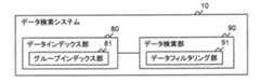さらに、データインデックス部80は、各集合のグループのそれぞれに含まれるセル数の大小関係に基づいて定義される関係であって、セル数が多いグループを含む集合が、セル数が少ない同じグループを含む集合を支配するという関係を示す支配関係を抽出する支配関係抽出部(例えば、支配関係インデックス部604)をさらに含み、データフィルタリング部91は、支配関係によって支配されている集合がより多く存在する集合を検索候補として優先的に選択してもよい。  Furthermore, the