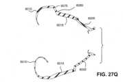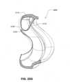 実施例において、(a)密閉構造は、密閉構造の内周へ突出した密閉フラップをさらに含み、(b)密閉フラップは、患者の鼻骨上方の鼻の側部に対して密閉を形成するように構成され、(c)密閉フラップは、翼の密閉を回避するように構成され、(d)密閉面の一部は、ループ密閉面の一部の残りの部位に相対して可撓性が高く、ループの残りの部位よりもより肉薄の壁部を含み、(e)密閉面の一部は、ループの残りの部位よりもより肉厚の壁部を含み、(f)ループは、翼を含む鼻の側壁と接触するように配置され、(g)ループは、患者の鼻骨上方の鼻の側部との接触を維持するように構成された連続的表面を提供し、(h)ループは、少なくとも1つの閉端を含み、(i)ループは、密閉構造を内方に折り畳んで、密閉構造の内面上に接続点を形成し、(j)接続点は、治療圧力がループの内面へ付加されたときに密閉面の外方破裂を中和できるだけの充分な張力をループへ付与するように密閉面に相対して配置され、(k)ループは、接続点において所定の角度を形成し、所定の角度は、治療圧力付与時においてループ中の張力を決定し、(l)接続点は調節可能であり、(m)接続点は、解放可能な接続であり、(n)密閉構造は、第2の接続点をさらに含み、(o)密閉面は、患者の顔との密着を低減するために摩擦が低い領域を含み、(p)摩擦が低い領域はつや消し表面であり、(q)摩擦が低い領域は、患者の鼻側部が密閉面に対して自由にスライドするように適合され、かつ/または(r)ループが縁無し密閉面を提供する。 In embodiments, (a) the sealing structure further includes a sealing flap projecting to an inner periphery of the sealing structure, and (b) the sealing flap is configured to form a seal against the side of the nose above the nasal bone of the patient. (c) the sealing flap is configured to avoid sealing of the wing; and (d) a portion of the sealing surface is highly flexible relative to a remaining portion of the portion of the loop sealing surface. , (e) a portion of the sealing surface includes a wall that is thicker than the remainder of the loop, and (f) the loop includes an airfoil. (g) the loop provides a continuous surface configured to maintain contact with the side of the nose over the patient's nasal bone; , including at least one closed end, (i) the loop folds the closure structure inward to form a connection point on the interior surface of the closure structure, and (j) the connection point is such that the treatment pressure is applied to the interior surface of the loop. (k) the loop forms a predetermined angle at the point of connection, and (k) the loop forms a predetermined angle at the point of connection; , the predetermined angle determines the tension in the loop upon application of therapeutic pressure, (l) the connection point is adjustable, (m) the connection point is a releasable connection, and (n) the closed structure is , further comprising a second connection point, (o) the sealing surface includes a low friction region to reduce intimate contact with the patient's face, (p) the low friction region is a matte surface, and (q ) the low friction region is adapted so that the side of the patient's nose slides freely against the sealing surface, and/or (r) the loop provides a rimless sealing surface.