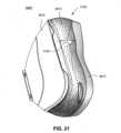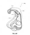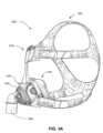 実施例において、(a)密閉フラップは、密閉構造の内周へ突出し、(b)密閉フラップは、患者の目頭部分が押圧されたときに鼻骨の上方の鼻の側部に対して上顎骨上方の鼻の側部に隣接して密閉を形成するように構成され、(c)密閉フラップは、翼の密閉を回避するように構成され、(d)密閉面の一部は、ループの残りの部位よりも高い可撓性を有し、(e)密閉面の一部は、ループの残りの部位よりもより肉薄の壁部を含み、(f)密閉面の一部は、ループの残りの部位よりもより肉厚の壁部を含み、(g)密閉面は、患者の顔との密着を低減するための低い摩擦の領域を含み、(h)摩擦が低い領域はつや消し表面であり、(i)摩擦が低い領域は、患者の鼻の側部が密閉面に対して自由にスライドすることが可能なように適合され、(j)第1のループは、患者の顔と接触するように適合された密閉構造の領域を規定し、(k)第1の部位および第2の部位は、患者の顔と接触するように適合された密閉構造の領域の一部であり、(l)第1のループは連続的であり、(m)第2のループは、患者の鼻と接触してまたは患者の鼻と並んで配置され、(n)第2のループは、実質的に管状の構造が患者の鼻と接触するかまたは患者の鼻と並んで配置されるように適合されるように配置され、(o)実質的に管状の構造は、患者の鼻の側部に実質的に平行に配置されるように適合され、(p)密閉構造は、第2のループの第2の1つをさらに含み、(g)実質的に管状の構造は、周囲圧力を超える圧力と流体連通するように適合された中空内部を含み、(r)実質的に管状の構造は、2つの開口端部を含み、かつ/または、(s)第2のループは、患者インターフェースが患者によって内部加圧されるかまたは調節されたときに第2のループの破裂を防止するように適合される。 In embodiments, (a) the sealing flap projects toward the inner periphery of the sealing structure, and (b) the sealing flap extends upwardly toward the maxilla against the side of the nose above the nasal bone when the canthal region of the patient is compressed. (c) the sealing flap is configured to avoid sealing the wings; and (d) a portion of the sealing surface is configured to form a seal adjacent to the side of the nose of the loop. (e) a portion of the sealing surface includes a thinner wall than the remainder of the loop; and (f) a portion of the sealing surface includes a thinner wall than the remainder of the loop. (g) the sealing surface includes a low friction area to reduce contact with the patient's face; (h) the low friction area is a matte surface; (i) the low friction region is adapted to allow the side of the patient's nose to slide freely against the sealing surface; and (j) the first loop is adapted to contact the patient's face. (k) the first region and the second region are part of the region of the closed structure adapted to contact the patient's face; (l) the first loop is continuous; (m) the second loop is disposed in contact with or alongside the patient's nose; and (n) the second loop is substantially tubular. (o) the substantially tubular structure is positioned substantially to the side of the patient's nose; (p) the closed structure further includes a second one of the second loops; and (g) the substantially tubular structure is in fluid communication with a pressure above ambient pressure. (r) the substantially tubular structure includes two open ends, and/or (s) the second loop includes a hollow interior adapted to allow the patient interface to be internally manipulated by the patient. Adapted to prevent rupture of the second loop when compressed or conditioned.