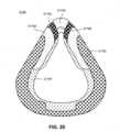 本技術の一形態の別の態様は、周囲空気圧力に対して連続的に陽圧にて少なくとも患者の鼻腔の入口を含む患者の気道への入口への空気流れの密閉送達を行うための患者インターフェースのための密閉構造である。患者インターフェースは、患者の睡眠時における患者の呼吸サイクル全体において、使用時において周囲空気圧力を超える約3cmH2O~約40cmH2Oの範囲の治療圧力を維持するように構成され、これにより、睡眠障害呼吸が改善される。密閉構造は、患者の気道への入口の周囲にシールを形成するように構成された密閉面と、ループとを含む。このループは、密閉構造を密閉構造の外周の内方に折り畳んで、ループが連続的になるように実質的に管状の構造を形成し、ループは、密閉面の一部を含む。 Another aspect of one form of the present technology is to provide a patient with air for sealing delivery of airflow to an entrance to the patient's airway, including at least the entrance to the patient's nasal cavity, at a continuous positive pressure relative to ambient air pressure. Sealed structure for interface. The patient interface is configured to, in use, maintain a therapeutic pressure in the range of about 3 cm H2O to about 40 cm H2O above ambient air pressure throughout the patient's breathing cycle during the patient's sleep, thereby improving sleep-disordered breathing. be done. The sealing structure includes a sealing surface configured to form a seal around an entrance to the patient's airway and a loop. The loop folds the closure structure inward around the perimeter of the closure structure to form a substantially tubular structure such that the loop is continuous and includes a portion of the closure surface.