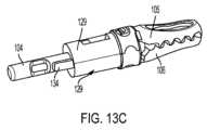 図12は、図11のベースコンポーネントのためのコネクタ要素の例示的な実施形態を示す。図13A~図13Cが図11の接続されたベースコンポーネントおよび図12のコネクタ要素を伴う、図1の鉗子の組み立ての段階を示す。 FIG. 12 shows an exemplary embodiment of a connector element for the base component of FIG. 11. 13A-13C illustrate stages of assembly of the forceps of FIG. 1 with the connected base component of FIG. 11 and the connector element of FIG. 12.