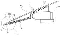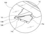 図7に示す別の変形例においては、熱伝導部材14Bの窓ガラス100の近傍に配置される部分(一側縁部)に、複数の切欠部14cが形成されている。この場合、熱伝導部材14Bと窓ガラス100とは、非接触状態の形態であってもよいし、接触した形態であってもよい。なお、ここで、切欠部14cを複数設けた例を示したが、切欠部14cは少なくとも1つ設けられていれば、同様の機能は確保できる。  In another modification shown in FIG. 7, a plurality of