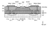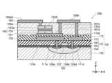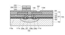絶縁膜108には、ビア111s,111dが形成されている。絶縁膜108上には、第1の配線層(第1配線層)110が形成されている。第1の配線層110は、電位の異なり得る複数の配線を含んでおり、配線110s,110dを含んでいる。なお、このように、図1以降の断面図においては、配線層は、その配線層に含まれる1つの配線の横の位置に符号を表示するものとする。ビア111s,111dは、配線層110の配線110s,110dとn形半導体領域104s,104dとの間にそれぞれ設けられ、これらを電気的に接続している。配線層110およびビア111s,111dは、たとえばAlやCu等の金属によって形成されている。配線層110およびビア111s,111dは、高融点金属等を含んでもよい。