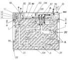 上側のカバー層22’を取り外した状態で蓋2を上方から見た図では、蓋フレーム23’を見ることができ、蓋フレーム内には、サンドイッチ構造の個々の層が保持されている。蓋フレーム23’は、安定性を高めるために有利である。この場合、切欠きAを有したコア層21’を見ることができる。コア層21’の下側にはプリント基板20’を見ることができ、この場合、蓋2の層構造は、別のように、例えばプリント基板20’なしで構成されていてもよい。接続コネクタ25’と作用接続可能な電流接続装置20は、上側の蓋フレーム23’に略示されている。  In a top view of the