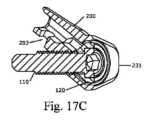 環状近位表面の配置は、第1の貫通導管の第2の端部および第2の締結導管の第2の端部の接合部を画定する周縁を連続的に延長するので、環状締結通路が環状であることは、理解されなければならない。It should be appreciated that the annular fastening passage is annular because the annular proximal surface arrangement extends continuously around the periphery defining the junction of the second end of the first through conduit and the second end of the second fastening conduit.