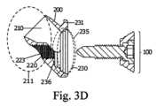 特定の実施形態では、遠位付属物の第2の端部は、第1の貫通導管内に追加で収容されて前記第1の貫通導管を2つのセクションに分割し、第1の端部は、第1の貫通導管の第1の端部から突出している。In certain embodiments, the second end of the distal appendage is additionally received within the first through conduit to divide said first through conduit into two sections, with the first end protruding from the first end of the first through conduit.