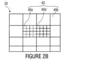 図2bは、再分割のための他の実施例を示す。図2bによれば、サンプル配列20は、第1に、互いに隣接した状態で重なり合わないように均一な二次元配置となるように配置されたマクロブロック40bに分割され、各マクロブロック40bは、マクロブロックが再分割されないか、再分割される場合には、異なるマクロブロックに対して異なる再分割精度を達成するように均一な二次元状態で同じサイズのサブブロックに再分割されることに関する再分割情報に関連している。結果は、40a、40bおよび40aで示される異なるサイズに代表されるように、異なるサイズのブロック40へのサンプル配列20の再分割である。図2aのように、エンコーダ10は、実線および点線を有する図2bに示されるブロックの各々の二次元変換を実行する。