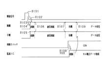 図2は、解錠信号を発信してから無線接続が完了するまでの流れを示すフローチャートである。また、図3は、同流れを示すタイムチャートである。まず、ドライバー等がコントローラ13の解錠ボタン15を押すことにより、解錠信号が発信される(S101)。その解錠信号を親機34が受信すること(S102)により親機34が起動を開始する(S103)。また、その解錠信号を子機32が受信すること(S104)により、子機32が起動を開始する(S105)。その後、起動した親機34と子機32とが無線接続を開始して(S106)、その後、無線接続を完了させる(S107)。その後、親機34及び子機32は待機する。Figure 2 is a flow chart showing the flow from when an unlock signal is sent to when a wireless connection is completed. Figure 3 is a time chart showing the same flow. First, the driver or the like presses the