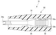雄ネジ部1dが雌ネジ部54aに螺合されてホーン54に連結されると、超音波振動子52で発生した超音波振動は、ホーン54を介して、プローブ処置部1aまで伝達される。  3, the outer shape of the