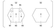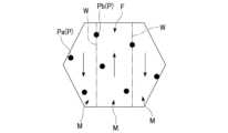炭化物粒子Pは、フェライトFの磁気的性質と関係なくランダムに析出するので、粒子数がある程度多くなると、一部の炭化物粒子Pは磁壁W上に析出する。例えば、図4において炭化物粒子Paは、磁区M内の炭化物粒子Pであり、炭化物粒子Pbは磁壁W上の炭化物粒子Pを示す。