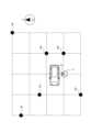 制御部21は、端末装置30から、通信部23を介して位置情報を受信する。このようにして制御部21は位置情報を取得する。制御部21は、記憶部22に格納した地図情報を参照する。地図情報には、照明装置40の位置が予め登録されている。制御部21は、地図情報に登録されている複数の照明装置40の中から、端末装置30の位置から基準距離以内に設けられている照明装置40を選択する。基準距離とは、例えば10mの距離をいう。基準距離はこれに限定されず、自由に設定されてよい。図3は、端末装置30及び照明装置40の位置の例を示す図である。図3では、ユーザ11が端末装置30を使用して、被写体である車両のキズを撮影している。図3において、照明装置40Aから40Fの位置は黒丸で示される。照明装置40Aから40Fのうち、端末装置30の位置から基準距離以内に設けられている照明装置40は、照明装置40Aから照明装置40Dである。よって制御部21はまず、照明装置40Aから照明装置40Dを選択する。このようにして制御部21は、複数の照明装置40のうち、端末装置30の周囲に設けられた少なくとも1つの照明装置40を選択する。The