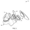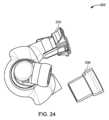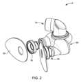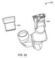 一部の実施形態においては、流体源は高流量生成器、持続気道陽圧(CPAP)機械、流体タンク、加湿器、または当技術分野において知られている、または使用される任意の他の流体源であってよい。本明細書において使用される「流体」という用語は、ヒトの気道への送達に適した任意のガス、ガスの混合物、または薬物(エアロゾル薬物など)を伴うガスを指す。例えば、図21に示されるチューブ10などのフレキシブルチューブは、流体源から流体を供給するために、吸気口38と結合してよい。チューブ10は、任意の公知のフレキシブルチューブを含んでよい。本明細書において使用される「チューブ」という語は、流体が流れる任意の導管、送達導管、管、配管、チャネル、または流路を指す。本明細書において使用される「フレキシブル」(flexible:可撓性)という用語は、屈曲可能であり、柔軟であり、人体の一般的な形状および輪郭に、容易に一致する任意のチューブを指す。一部の実施形態においては、チューブ10は、(以下に限定されるわけではないが)ポリウレタン、ポリ塩化ビニル、ポリアミド、ポリエステル、ポリオレフィン、シリコン樹脂、フルオロポリマー、およびそれらの組み合わせまたは共重合体などの、医療階級の材料から構築されてよい。チューブ10は、フレキシブル、弾性、および中空であってよい。一部の実施形態においては、チューブ10は約2~4mmの内径を有してよいが、より大きい、またはより小さい直径を有するチューブを使用してよい。例えば、チューブ10の内径は、特定の着用者の好み、および/または必要性に合わせて調節するために、増減されてよい。一部の実施形態においては、使用中、チューブ10は患者の耳殻上に引っ掛けてよく、使用中、顎の下に持ち上げてよい。In some embodiments, the fluid source may be a high flow generator, a continuous positive airway pressure (CPAP) machine, a fluid tank, a humidifier, or any other fluid source known or used in the art. As used herein, the term "fluid" refers to any gas, mixture of gases, or gas with medication (such as an aerosol medication) suitable for delivery to the human airway. For example, a flexible tube, such as