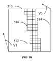 少なくとも1つの実施形態において、第1のサブブロック512内の複数の第1のサブブロックコンポーネントは、第2の参照ベクトルV1及び第2の参照フレームに基づいて予測され得る。第2のサブブロック514内の複数の第2のサブブロックコンポーネントは、第3の参照ベクトルV2及び第3の参照フレームに基づいて予測され得る。その上、第3のサブブロック516内の複数の第3のサブブロックコンポーネントは、第2の参照ベクトルV1、第3の参照ベクトルV2、第2の参照フレーム、及び第3の参照フレームに基づいて予測され得る。第3のサブブロック516内の第3のサブブロックコンポーネントは、第2の参照ベクトルV1及び第2の参照フレームに基づいて決定された複数の第1の参照サンプル、及び第3の参照ベクトルV2及び第3の参照フレームに基づいて決定された複数の第2の参照サンプルを導出し、複数のブレンディングの重みに基づいて第2の参照サンプル及び第3の参照サンプルをマージすることによって予測され得る。少なくとも1つの実施形態において、ブレンディングの重みは、分配線511と第3の予測領域516内の第3のサブブロックコンポーネントとの間の複数のコンポーネント距離に基づいて導出されてもよい。In at least one embodiment, the first subblock components in the