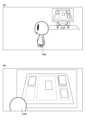 マッチングサービスを利用して可能となる観戦機能の一態様は、対戦ルームの部屋内に配置されたモニタオブジェクトを用いて行われる。モニタオブジェクトは、各部屋に少なくとも1つは配置された平板状のオブジェクトであり、その平面部(以下、情報表示部として言及)に適用するテクスチャを異ならせることで、情報表示に利用することができる。本実施形態のマッチングサービスでは、モニタオブジェクトの情報表示部には、当該モニタオブジェクトが配置された部屋内のプレイヤが現在実行中の対戦ゲームに係るプレイ映像が表示されるものとする。即ち、サーバ200は、当該部屋内のマッチング中である1人のプレイヤに係る手元映像の情報を外部サービスのゲームサーバから順次受信し、そのフレーム画像を情報表示部に表示するテクスチャとして、同部屋に入室中の利用者の利用者端末100に送信することで、モニタオブジェクトを介して提示することができる。ここで、情報表示部に適用されるテクスチャは、図10(a)に示したように1人のプレイヤにフォーカスした手元映像が用いられるものであってもよいし、図10(b)に示したように対戦中の両プレイヤの手元映像を含んで構成された画像が用いられるものであってもよい。One aspect of the spectating function that is made possible by using the matching service is performed using a monitor object arranged in a battle room. At least one monitor object is a flat-shaped object arranged in each room, and can be used for information display by applying different textures to its flat surface (hereinafter referred to as the information display section). In the matching service of this embodiment, the information display section of the monitor object displays a play video of a battle game currently being played by a player in the room in which the monitor object is arranged. That is, the