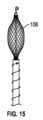 図14~図17に示されるように、PAバルーン104について、PA位置決め構造108は、バルーン104の遠位にあることができ、図14に示す(例えば、血管系を通ってPAに通過する)細長い構成から、図15に示す中間的な拡張構成を経て、図16に示す完全に拡張された構成(例えば、結合されたトルクシャフトを反時計回りに回転させると、内部ねじに沿って遠位部から近位部を延ばし、固定構造を圧縮することができ、一方、トルクシャフトを時計回りに回転させると、固定構造の遠位端部および近位端部を接近させ、その直径を拡大することができる)へと拡張した後に、PAの壁に対して固定する拡張可能なケージとして実装することができる。また、図16は、拡張された構成のPAバルーン104を示す。さらに図14~図16に示されているのは、バルーンカテーテルおよび固定システムをガイドワイヤ上の所定の位置に追跡することができるように、バルーンカテーテルおよび固定システムが導入される前に、解剖学的構造(この場合はPA)内の所望の位置に独立して挿入および前進され得るガイドワイヤ120である。その後、治療過程の間にガイドワイヤは取り外れても、または所定の位置に置かれたままでもよい。14-17, for the