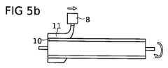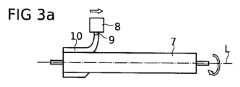基層10が、心棒7上に完全に塗布され、所望の程度まで少なくとも乾燥した後、図5に関して以下より詳細に説明されるように、液状材料の層11が、基層10と同じ様式で、すなわち、図3bに示されるように、心棒7を回転させながら分注器8を心棒7の長手方向に沿って移動させることによって、塗布される。層11の液状材料は、基層10の材料と同じ材料、または異なる材料であってもよい。同じ分注器8が使用されてもよい。特に、材料が異なる場合、材料は、分注器8の別のノズル、またはおそらくは別の分注器によって分注されてもよい。層11は、カニューレ4の第1の軸区域13の部分であり(図3dを参照のこと)、心棒7の長さの部分に沿ってのみ塗布される。After the