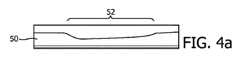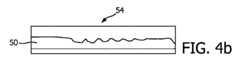 図3は、超音波血栓溶解に使用される典型的な集束超音波治療ビーム領域の横断面の圧力レベルプロファイルのプロットである。プロットの線は、様々な圧力レベルにおける集束ビーム直径を示す。超音波場内のVAR、具体的には、微小気泡は、50~100kPaの比較的中程度の圧力によって素早く破壊されるが、超音波場内に残り続ける限り、通常は、数十ミリ秒の間、治療血栓溶解のために治療的に有効であり続ける。しかし、ビームが、治療効果があるように十分な振幅(通常は200~400kPaのピーク圧力)を有すると、ビームに近接するVARは、治療効果に寄与することなく、ビームの両側における減少した振幅によって破壊される。この影響により、血栓の周りのより大きい治療ボリュームに亘って超音波ビームをステアリングする際に、幾つかの不所望の結果が生じる可能性がある。ビームがステアリングされて互いの間隔が近くになり過ぎると、連続ビームによる治療効果が減少する。これは、図4aに示される血栓の図によって説明される。図4aは、52に示されるように、血栓の上部に沿って左から右へと送られた一連の治療ビームからなる治療ビームパターンによって溶解されたある長さのインビトロ血栓50を示す。図示されるように、パターンの初期治療ビームは、左側で血栓を深くまで破壊するのに効果的であるが、初期治療ビーム付近における不所望の微小気泡の破壊によって微小気泡が減少することにより、走査が右側へと進むにつれて、残る有効な微小気泡の数が少なくなる。結果として、範囲が示された領域の右側では、血栓は浅い深度までしか溶解されないことが分かる。しかし、この影響を回避するために、個々のビームが離れ過ぎていると、結果として、血栓の治療ビーム照射が不十分となり、図4bの54に示されるように、血栓のスカロッピングがもたらされる。本開示のシステム及び方法は、図4cの56に示されるように、これら両方の不所望の結果を阻止するのに効果的である。Figure 3 is a plot of pressure level profiles across a typical focused ultrasound therapeutic beam region used for ultrasound thrombolysis. The lines in the plot indicate the focused beam diameter at various pressure levels. VARs within the ultrasound field, specifically microbubbles, are quickly destroyed by relatively moderate pressures of 50-100 kPa, but remain therapeutically effective for therapeutic thrombolysis as long as they remain within the ultrasound field, typically for tens of milliseconds. However, once the beam has sufficient amplitude to be therapeutically effective (typically 200-400 kPa peak pressure), VARs close to the beam are destroyed by the reduced amplitude on either side of the beam without contributing to the therapeutic effect. This effect can produce several undesirable results when steering an ultrasound beam over a larger treatment volume around a thrombus. If the beams are steered too close together, the therapeutic effect of successive beams is reduced. This is illustrated by the diagram of a thrombus shown in Figure 4a. FIG. 4a shows a length of in vitro