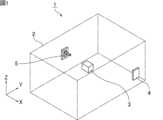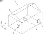実施例2では、図4に示す送電器10と、図7に示す受電器18と、アルミニウムからなる骨組みと亜鉛メッシュ壁面とアルミニウム床面からなる電磁波遮蔽部材2とから構成される、図10に示す無線電力伝送システム22を考える。実施例1の無線電力伝送システム19では共振周波数調整部5がYZ面上に設置されたのに対し、実施例2の無線電力伝送システム22では共振周波数調整部5がZX面上に設置されている。In Example 2, a wireless