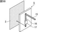共振周波数調整部5の構成について図5A、図5Bおよび図5Cを用いて説明する。共振周波数調整部5は導電性突起部15と伝送線路16とからなる。導電性突起部15の開放端は共振器(構造体)の内側に配置されている。ここで突起とは、電磁波遮蔽部材2よりも共振器の内側に向けて開放端を突き出した形状であることを指しており、その形状はロッド状、ワイヤー状、傘状、マッシュルーム状、円錐状、角錐状、ループ状などであってもよい。また、プリント基板などの上に配線し、それを突き出して代用してもよい。突起形状の保護や安全対策などの目的で、導電性突起部15が樹脂などの部材で保護されていてもよい。導電性突起部15の開放端でない他端は、伝送線路16に接続される。伝送線路16は例えばストリップライン構造を採用するなどの手段によって、インピーダンスを50Ωに調整すると好ましい。伝送線路16の、導電性突起部15と接続していない他端は、電磁波遮蔽部材2と電気的に接続される。The configuration of the resonant