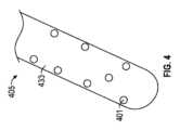 図4は、別の例示的挿入可能器具405を示す。器具405は、器具305のように、ほぼ直線状のシャフト433を含み、複数の穴401がその側壁を貫通して延びている。穴401は、シャフト433に沿ってランダムに配置されている。更に、器具405は、表面にリッジを含んでよく、且つ/又は穴401の周囲に隆起したフィーチャを含んでよく、これは、真空の印加時に組織が穴401を塞ぐのを防ぐことを支援する為である。Figure 4 illustrates another exemplary