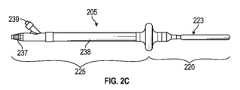 器具105に似ている別の実施形態である挿入可能器具205の詳細図を図2A-2Iに示す。挿入可能器具205は、近位部225、遠位部220、及びそれらの間の封止材222を含む。A detailed view of