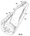 フラップ2304が、少なくとも部分的に、織布材料から形成される実施形態では、第一および/または第二の端領域3200、3202のうちの一つ以上に、セルビッジを維持することが望ましい場合がある。セルビッジは、フラップ2304のクリーニングエッジ3201に沿って延在し、セルビッジは、フラップ2304のクリーニングエッジ3201のセルビッジを含まない一部分に対する場合(例えば、フラップ2304の一部分がテーパを作り出すために取り除かれた場合)、フラップ2304の耐摩耗性を向上させる場合がある。少なくとも一つの実施例では、製造者によるセルビッジが維持されるのであり、第一および/または第二の端領域3300、3202のテーパのうちの一つ以上が、フラップ2304の据え付けエッジを修正して形成されてもよい。具体的には、フラップ2304のクリーニングエッジ3201は、アジテータへと据え付ける前は実質的に直線状であってもよく、第一のおよび/または第二の端領域3200、3202の領域では、フラップ2304の据え付けエッジ(基部でもあり得る)は、中央領域2324(例えば、中間)のフラップ2304の長さと比較して、長さが低減されてもよい。少なくとも一つの実施例では、据え付けエッジは、フラップ2304がアジテータ本体2300内に設置されたときに真っ直ぐになり、それによって、第一および/または第二の端領域3200、3202において輪郭のある(例えば、テーパ状になっている)セルビッジをもたらす、複数のセグメント(例えば、型で作製された輪郭のある複数の「T」セグメント)を含んでもよい。言い換えれば、フラップ2304は、本体2300へと据え付けられた時に、フラップ2304内にテーパが形成されるようにする、据え付けエッジに沿って複数のセグメントを含むものとして一般的に記述されてもよい。In embodiments in which the