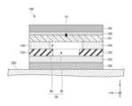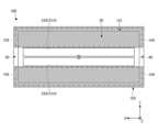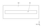 図10は、粘着層104の構成の第1変形例を示す平面図である。上記実施形態では、図2、図3などに示すように、粘着層104の第2スリット40は、延在方向(X方向)の両端が粘着層104の端部まで到達して粘着層104を2つに区分するよう設けられる構成を例示した。粘着層104の第2スリット40は、延在方向の少なくとも一方が粘着層104の端部まで到達するように形成されればよく、例えば図10に示すように、第2スリット40の延在方向の一方のみが粘着層104の端部まで到達し、他方は端部まで到達せずに粘着層104により塞がれる構成としてもよい。粘着層104を図10に示す構成としても、空隙層50の外部との連通箇所を一箇所設けることができるので、上記実施形態と同様に、空隙層50内の空気を入れ替えることが可能であり、空隙層50の比誘電率を1に維持することを容易にできる。10 is a plan view showing a first modified example of the configuration of the