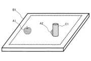 詳細については後述するが、識別装置30Aは、背景となる物体の上に識別対象となる物体が配置された被写体の撮像画像に基づいて、識別対象となる物体の種類を識別する。以下では、背景となる物体のことを背景物と呼ぶ。また、識別対象となる物体のことを識別対象物と呼ぶ。背景物の上に識別対象物が配置された被写体は、本開示における識別対象物を含む被写体の一例である。図2は、本実施形態における被写体の一例を示す図である。本実施形態における被写体では、背景物B1の上に識別対象物A1、A2及びC1が配置される。背景物B1は机である。識別対象物A1及び識別対象物A2はリンゴである。識別対象物C1は円筒状の花瓶である。Although details will be described later, the