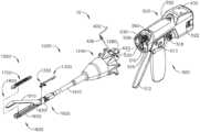 通常の外科的処置の間、臨床医は、標的組織にアクセスするため、患者のトロカール又は他の開口部を通して、外科用エンドエフェクタ1500を手術部位へと導入することができる。そうするとき、臨床医は、典型的には、シャフト軸SAに沿って外科用エンドエフェクタ1500を軸方向に整列させる(非関節運動状態)。外科用エンドエフェクタ1500がトロカールポートを通過すると、例えば、臨床医には、エンドエフェクタ1500を関節運動させて、標的組織に隣接させて有利に配置することが必要とされ得る。これは、アンビル1810が標的組織の上で閉じる前であるため、閉鎖駆動システム510は非作動のままである。この位置にあるとき、発射駆動システム530が作動することにより、関節運動が近位関節運動ドライバ1370に適用される。エンドエフェクタ1500が所望の関節運動位置に達すると、発射駆動システム530は非活性化され、関節運動ロック1390が外科用エンドエフェクタ1500を関節運動位置で保持することができる。次に臨床医は、閉鎖駆動システム510を作動させて、アンビル1810を標的組織の上で閉じることができる。閉鎖駆動システム510をこのように作動させることによってまた、シフタ組立体1100が中間発射シャフト部分1310から近位関節運動ドライバ1370を分離することができる。したがって、標的組織が外科用エンドエフェクタ1500で捕捉されると、臨床医は再び、発射駆動システム530を作動させて、発射部材1330を外科用ステープル/締結具カートリッジ1400、又はRFカートリッジ1700を通して軸方向に前進させ、クランプ留めした組織を切断し、ステープル/締結具を切断した組織Tに発射する。他の閉鎖及び発射装置構成、作動装置構成(共に手持ち型、手動、及び自動又はロボット式)もまた使用して、本開示の範囲を逸脱することなく、外科用道具組立体1000の閉鎖システム構成要素、関節運動システム構成要素、及び/又は発射システム構成要素の軸移動を制御することができる。During a typical surgical procedure, a clinician may introduce the