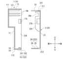 図5は、組付部1を模式的に表した背面図である。図5では、組付部1を簡略化して図示している。図6は、図5のA-A断面図である。図5に示すように、組付部1は、背面視(正面視)矩形状の第1パネル11と、第1パネル11の周縁から後方へ起立した周壁部12と、を含む。第1パネル11の周縁は、上辺111、下辺112、及び一対の側辺113,114を含む。一対の側辺113,114は、上辺111及び下辺112に直交している。周壁部12は、第1上壁121、第1下壁122、及び一対の第1側壁123,124を含む。第1上壁121は上辺111から起立しており、第1下壁122は下辺112から起立している。一対の第1側壁123,124は、夫々、一対の側辺113,114から起立している。第1下壁122は、本発明に係る「第1係合壁」の一例であり、一対の第1側壁123,124は、本発明に係る「第1直交係合壁」の一例である。  [Assembly section 1]